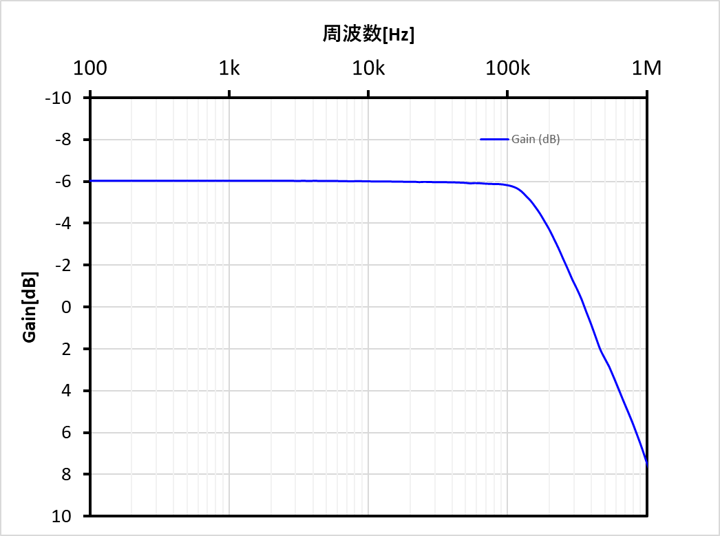 今回のパワーアンプはDC用途ですが、高速な応答を確保するためにできるだけ帯域を伸ばす設計としています。パワーアンプの帯域を伸ばすためには各トランジスタに流れるバイアス電流を大きくすればよいのですが、あまり大きくしすぎると電源がつらくなります。今回は、-3dBで200kHz程の帯域を確保しました。オーディオアンプの最終段等にも流用できると思われます。